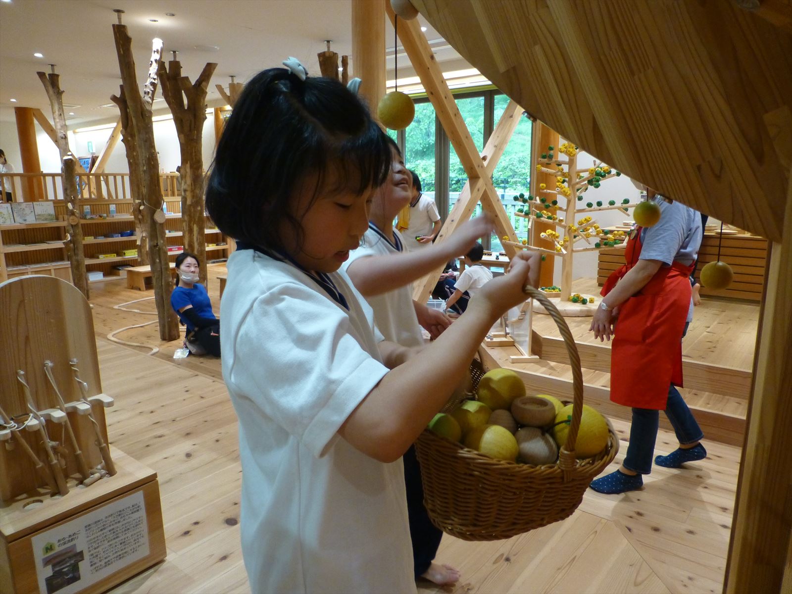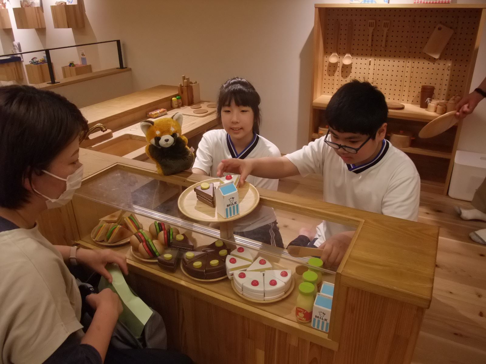 おもちゃ美術館に入ると、木のおもちゃがたくさんあって、そのおもちゃを使って遊ぶことができました。お寿司やピザなどの料理のおもちゃ、木のすべり台、木のプールなど木のぬくもりを感じられるおもちゃで楽しく遊ぶことができました。