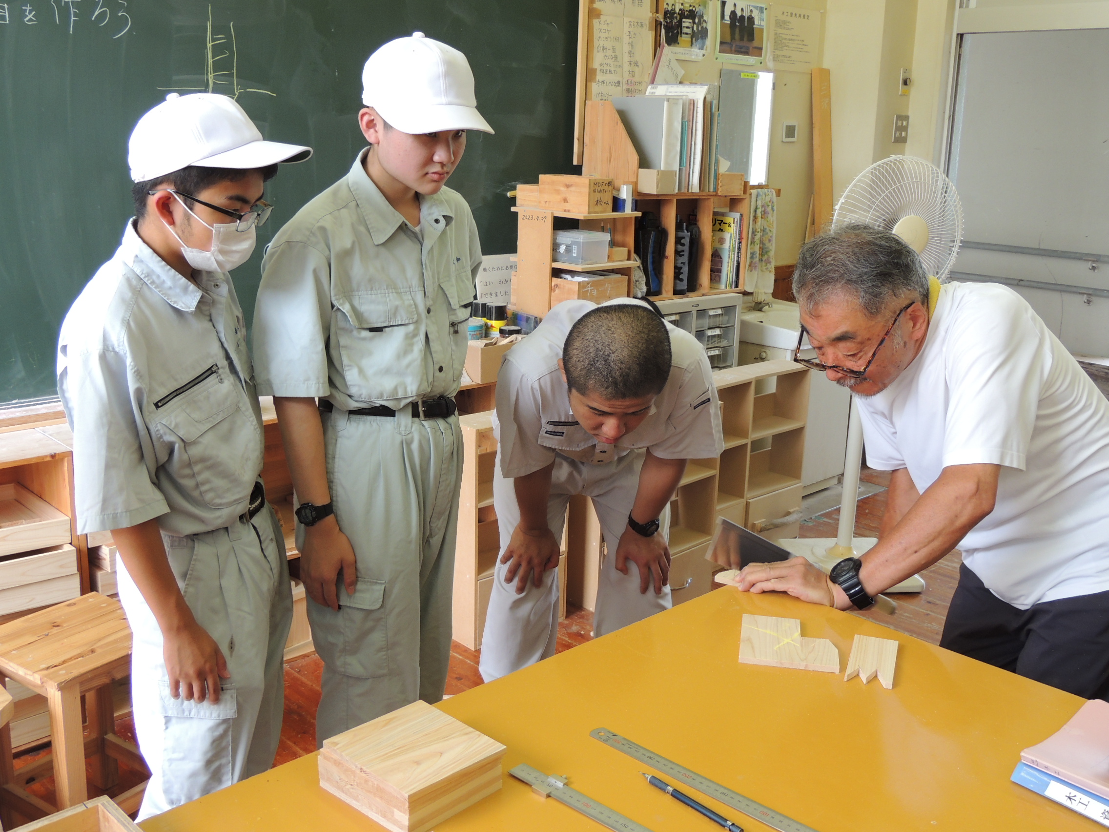 2025年7月8日 15時02分海外でのお仕事などで非常にお忙しい中、産業工芸科の生徒たち7名に木工の素晴らしさを伝えるため、再び来校していただきました。